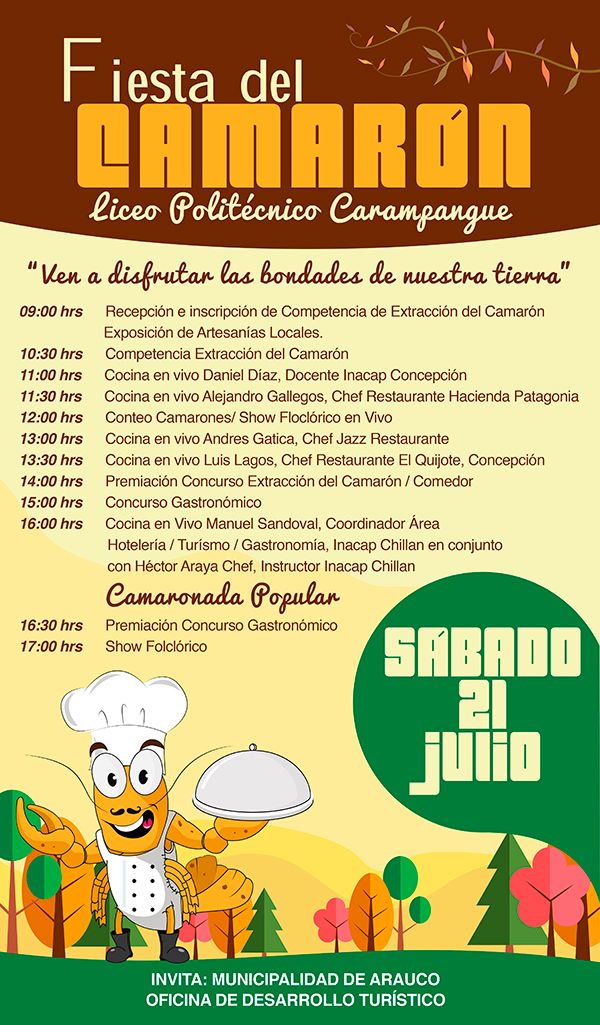 Este sábado, 21 de julio, se vivirá la décima versión de la Fiesta del Camarón, evento costumbrista que organiza la Municipalidad de Arauco a través de la Oficina de Desarrollo TurÃstico con el objetivo de rescatar la “extracción del camarónâ€, una de las tradiciones más populares de la comuna.
