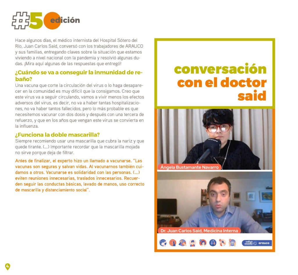 En septiembre de 2019 partimos con este espacio de información de ARAUCO a la comunidad. Lo que comenzó como un informativo en papel, a partir de marzo del año pasado se convirtió -debido a las restricciones sanitarias- en un medio digital que recibes en tu whatsapp o lees en redes sociales. Esta semana “De Aquà Somos†llega a su edición número 50 y, en esta oportunidad, te contamos las siguientes noticias: