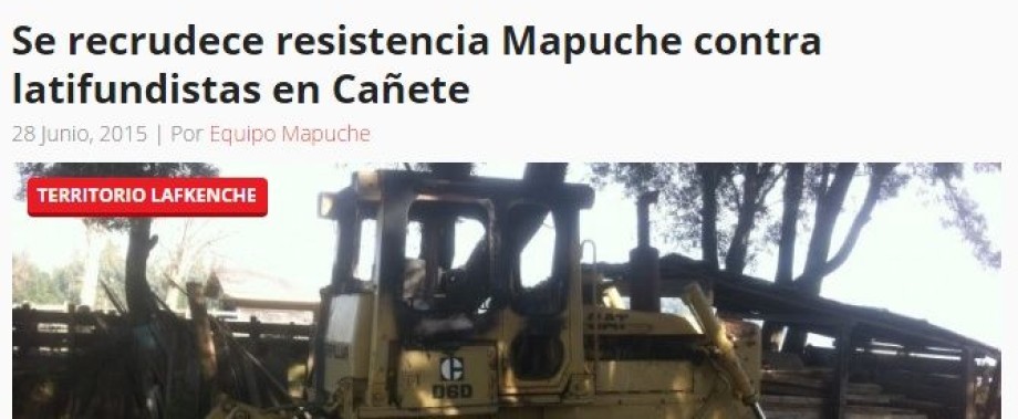 El portal Werken.cl, reconocido medio de comunicación informativo del pueblo Mapuche, informó que el último atentado incendiario ocurrido en Cañete la mañana de este domingo y que afectó al Fundo San Guillermo, fue perpetrado por Fuerzas de Resistencia Mapuche.