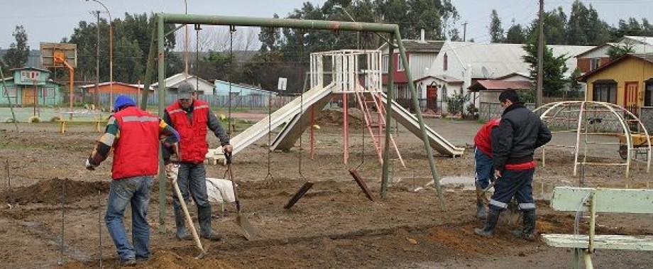 En plena ejecución se encuentran los proyectos de mejoramiento y reparación de los juegos infantiles existentes en las poblaciones de la comuna, la idea es dejar normalizados y habilitados los juegos para que estos no revistan peligro de accidentes para los niños, además en los próximos dÃas se sumará otra cuadrilla de trabajo para realizar reparaciones en veredas y otros trabajos de contingencia requeridos por los propios pobladores.