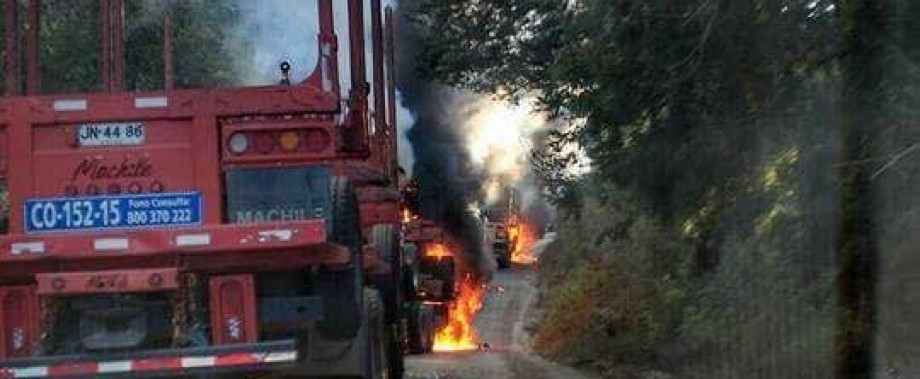 Como se habÃa adelantado por parte de las autoridades y por motivos de seguridad se decidió generar caravanas de al menos 15 camiones de empresas contratistas que trabajan para Forestal Arauco. camiones escoltadas por Carabineros para evitar de ésta forma los ataques en zonas de conflicto mapuche. Hoy sin embargo, un convoy fue interceptado en la ruta P-150 por encapuchados, aún cuando los uniformados encabezaban la lÃnea de maquinarias – que iban sin cargamento – que finalmente terminaron reducidas a escombros producto del ataque incendiario protagonizado por los antisociales que descendieron de los cerros cercanos al camino que atraviesa el fundo “El Retiro” cerca del cruce “La Campana”, en Tirúa.