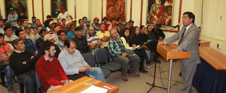 Representantes de la compañÃa, los felices trabajadores y el alcalde Jorge Radonich Barra tuvieron su primer encuentro este lunes en el auditorio municipal. AllÃ, la autoridad comunal resaltó la gestión del municipio y valoró el compromiso de la empresa constructora.