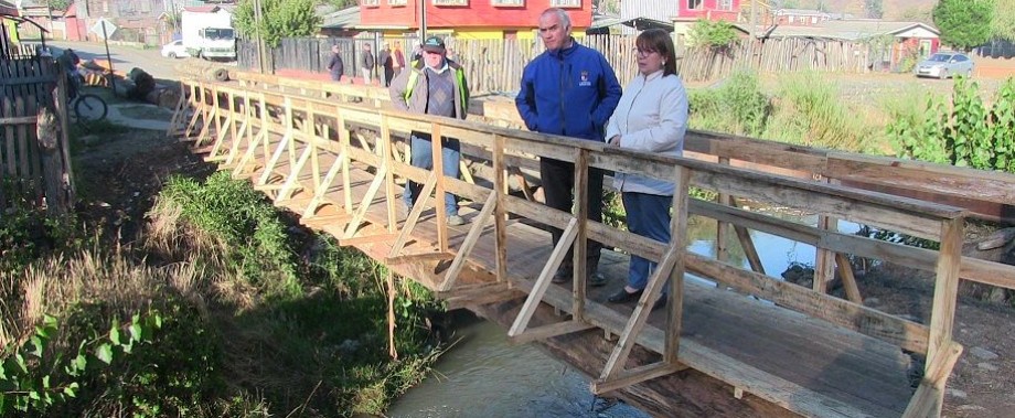 El Departamento de Obras del Municipio de Curanilahue construye un puente nuevo en Serrano, reponiendo la estructura antigua y dando mayor seguridad a peatones y conductores.