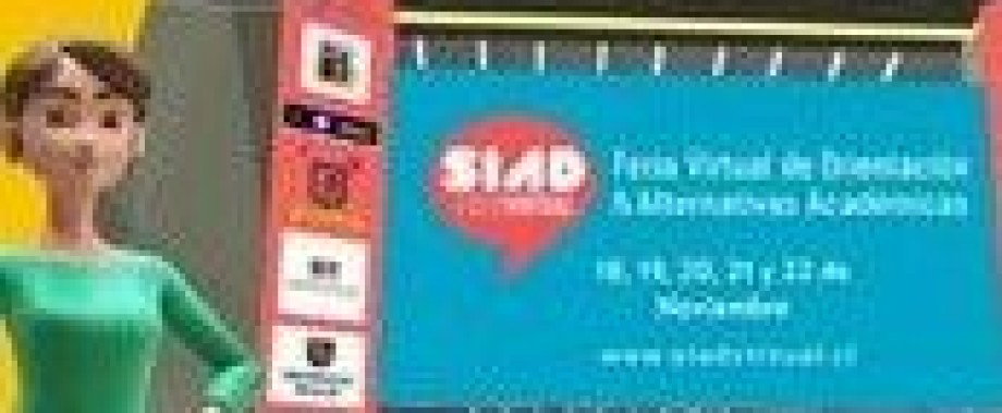 De manera totalmente gratuita y desde cualquier punto del paÃs (y del mundo) podrán acceder a SIAD VIRTUAL 2020, Feria on line de Orientación y Alternativas Académicas, que se realizará del 18 al 22 de noviembre. www.siadvirtual.cl