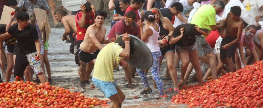 Más de 100 toneladas de tomate se dispusieron en la medialuna La Esparraguera como armamento para los guerreros. Algunos más maduros que otros, nadie en los alrededores se libró de algún tomatazo o bien recibió el jugo de la fruta. Al mismo tiempo, dos camiones aljibes fueron los encargados de bajar la temperatura en el improvisado coliseo, con 20 mil litros de agua.