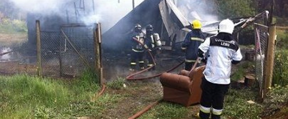 Totalmente consumido por las llamas terminó un inmueble en el sector de Ruca Raqui, sector rural situado a unos 15 kilómetros del casco urbano de Lebu. La casa pertenecÃa a Ximena Caro Nuñez de 24 años, quien vivÃa junto su pareja y  su pequeño hijo de tres años.