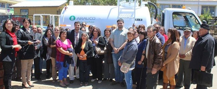 Se trata del primer camión limpia fosas de 5 mil litros que llega a la comuna, donado por la empresa Arauco por un monto superior a los 30 millones de pesos.