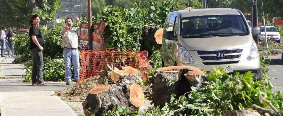 Una cuadrilla de la empresa constructora Rucan, que ejecuta la reposición del pavimento de la citada arteria vial por mandato del Servicio de Vivienda y Urbanismo, arrasó indiscriminadamente con todos los árboles que llevaban más de cien años entregando sombra y un ambiente natural al sector. Están indignados.